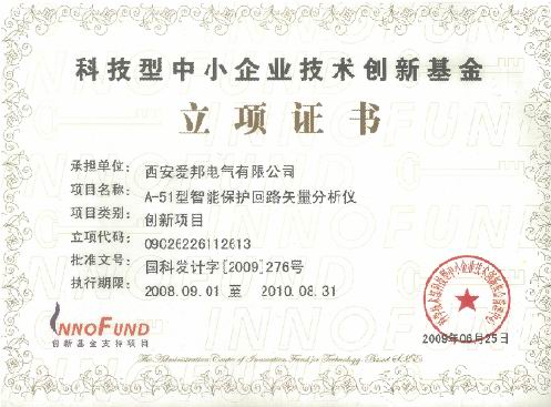 • 科技部創(chuàng)新基金立項(xiàng)證書